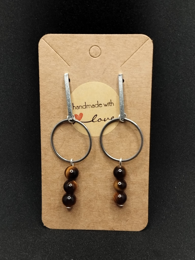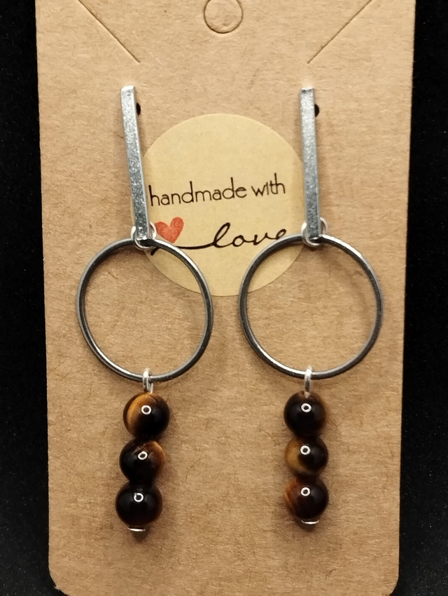 Boucle d'oreille ronde et oeil de tigre