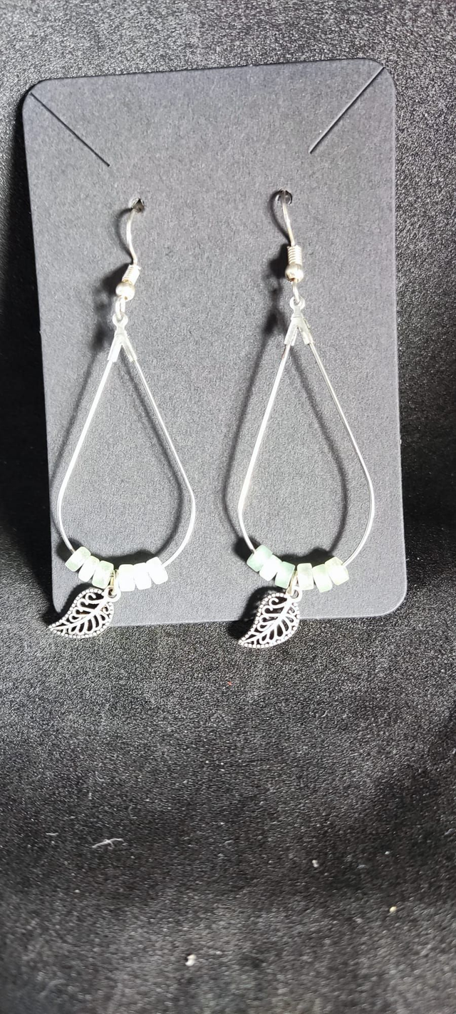 Boucles d’oreilles goutte – Perles aventurine & feuille argentée