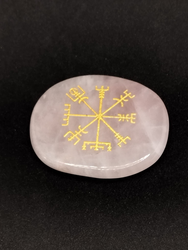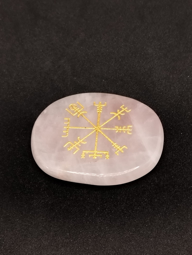La boussole de rune viking en quartz rose, aussi appelée Vegvísir, est un symbole puissant de guidance et de protection. Associée au quartz rose, elle combine la force des traditions nordiques avec l’énergie douce et apaisante de cette pierre.
