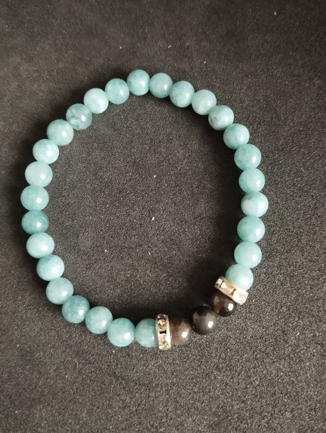 Ce bracelet associe la douceur apaisante de la calcédoine bleue à la force protectrice de l’obsidienne, créant un équilibre subtil entre calme intérieur et sécurité énergétique. La calcédoine bleue est une pierre de paix, de communication et de sérénité. Elle aide à apaiser le stress, les tensions émotionnelles et favorise une expression plus douce, plus claire et plus sincère des émotions.